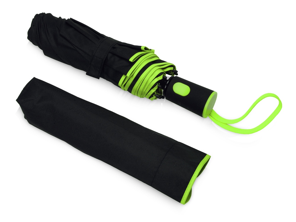 Зонт-полуавтомат складной Motley с цветными спицами, черный/зеленое яблоко
