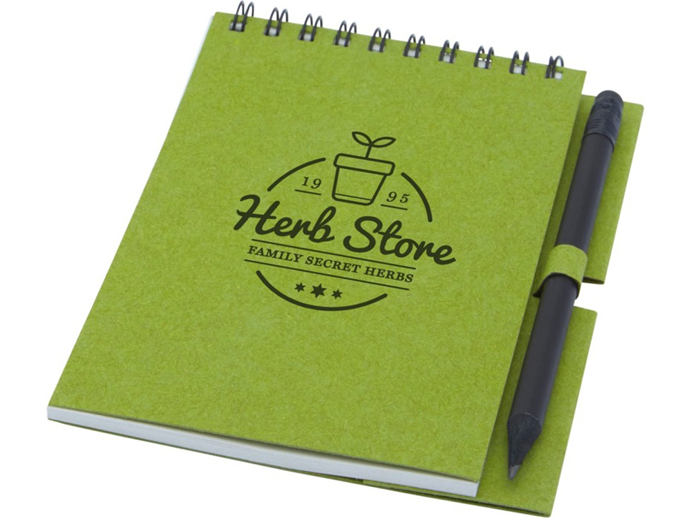 Блокнот Luciano Eco на пружине, с карандашом, маленький, зеленый