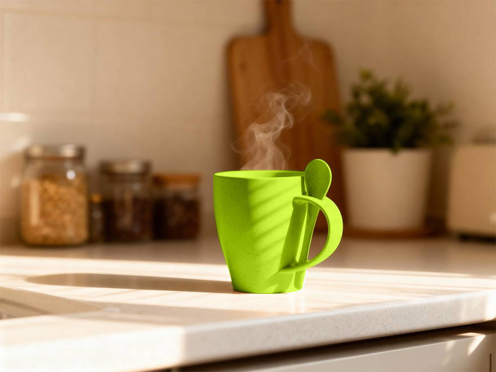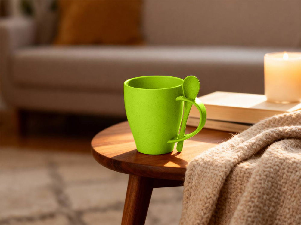 Пшеничная кружка Nina с ложкой, 300ml зеленое яблоко 375C