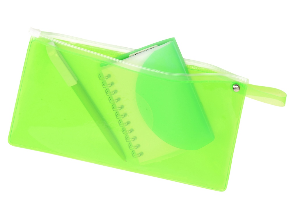 блокнот- прозрачный/зеленое яблоко, ручка- зеленое яблоко/белый, пенал- зеленое яблоко прозрачный