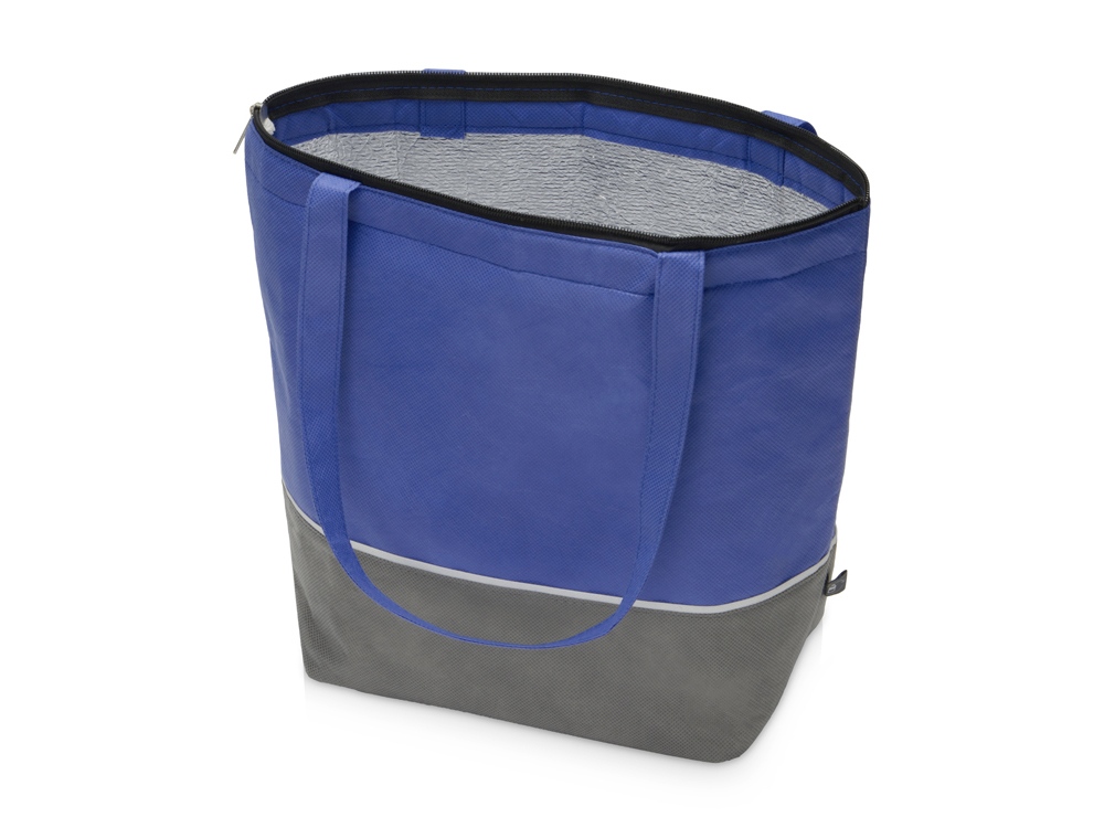 Сумка-холодильник Reviver с длинными ручками из нетканого переработанного материала RPET, синий/серый