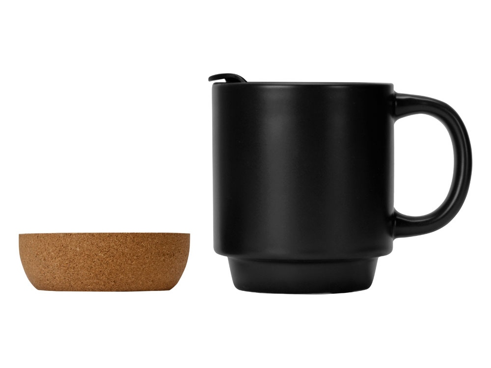 Кружка Denpasar с пробковым дном и крышкой, цветная с двух сторон, черный