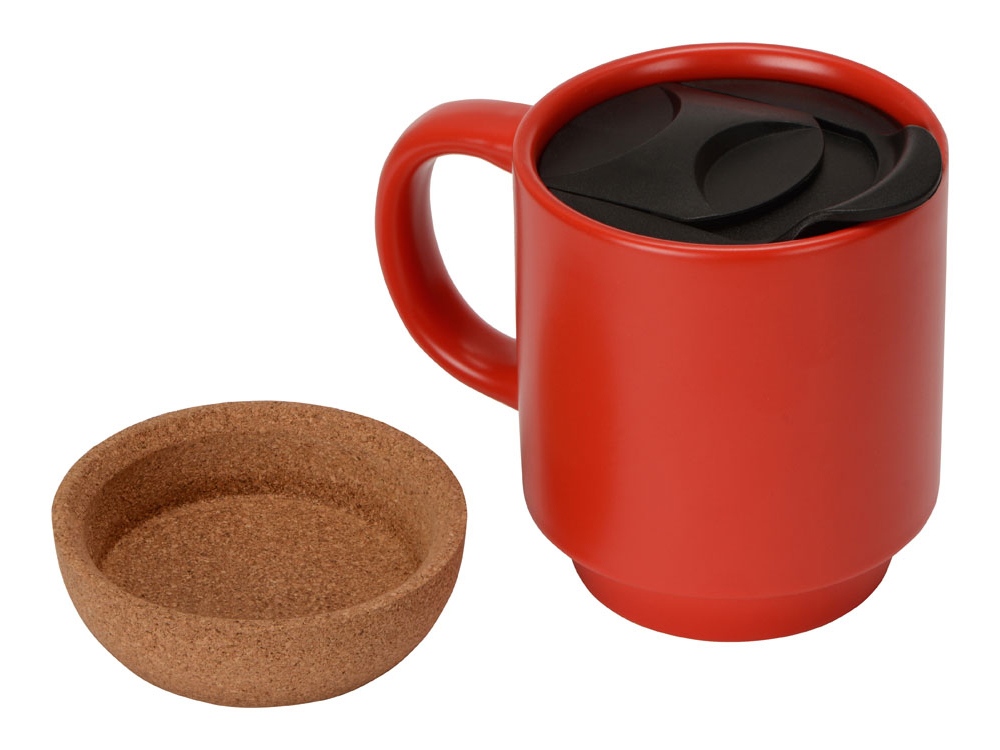 Кружка Denpasar с пробковым дном и крышкой, цветная с двух сторон, красный