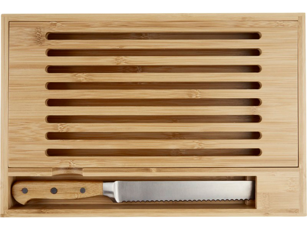 - Комплектность разделочная доска с поддоном 38 х 25 х 3 см, нож хлебный 34 х 3 см