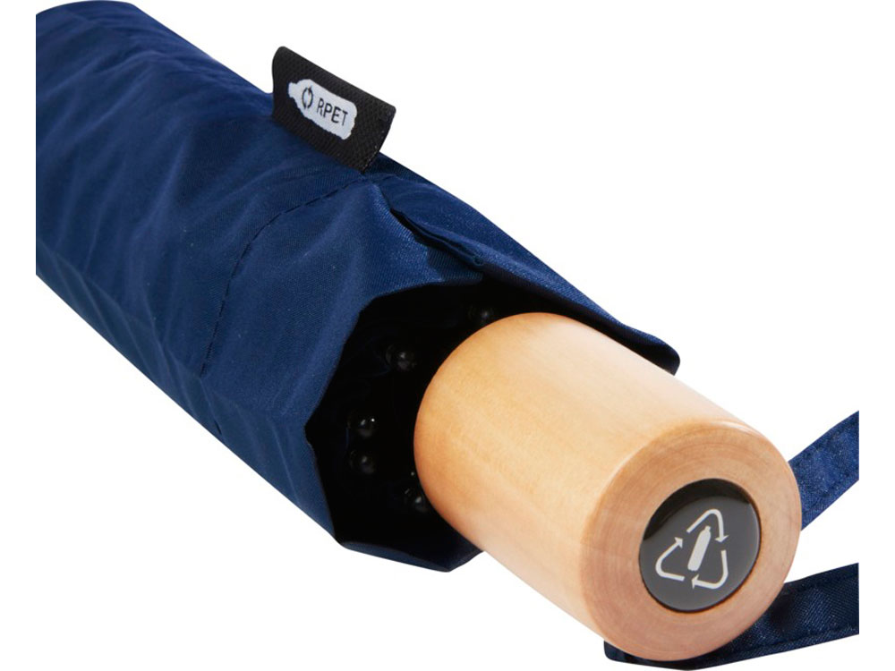 Birgit, складной ветроустойчивой зонт диаметром 21 дюйм из переработанного ПЭТ, темно-синий