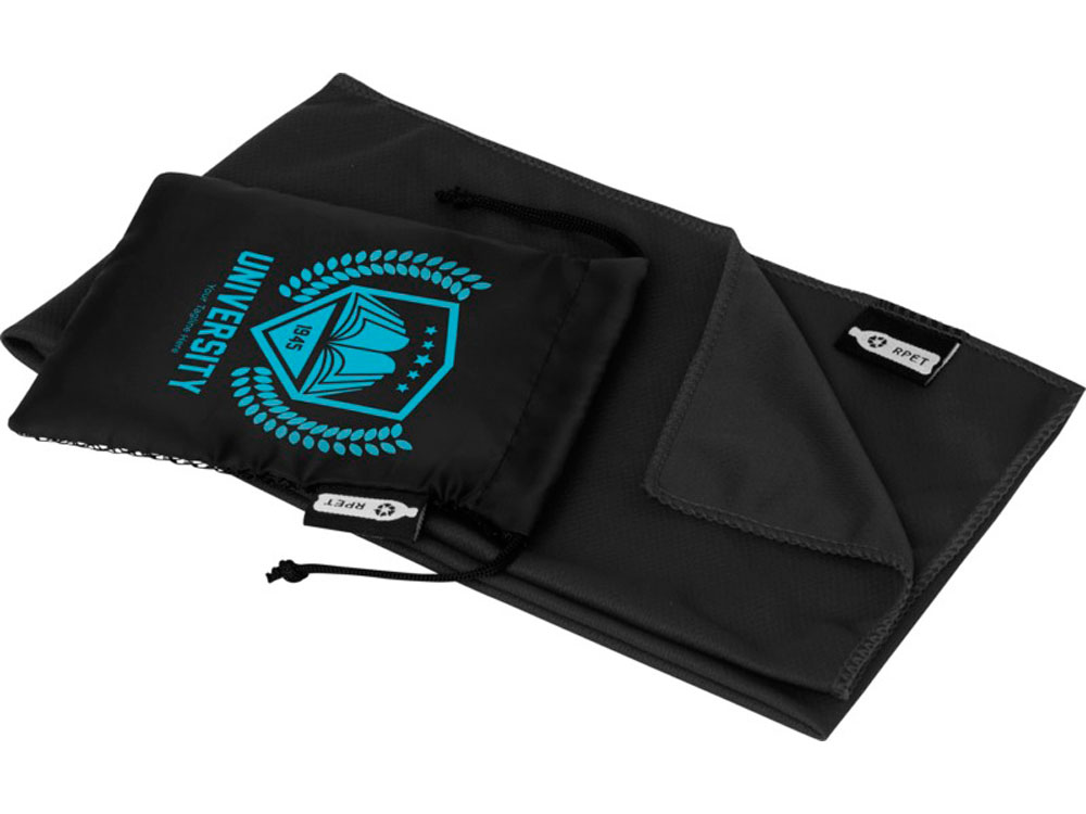 Спортивное охлаждающее полотенце Raquel из переработанного ПЭТ в мешочке, черный