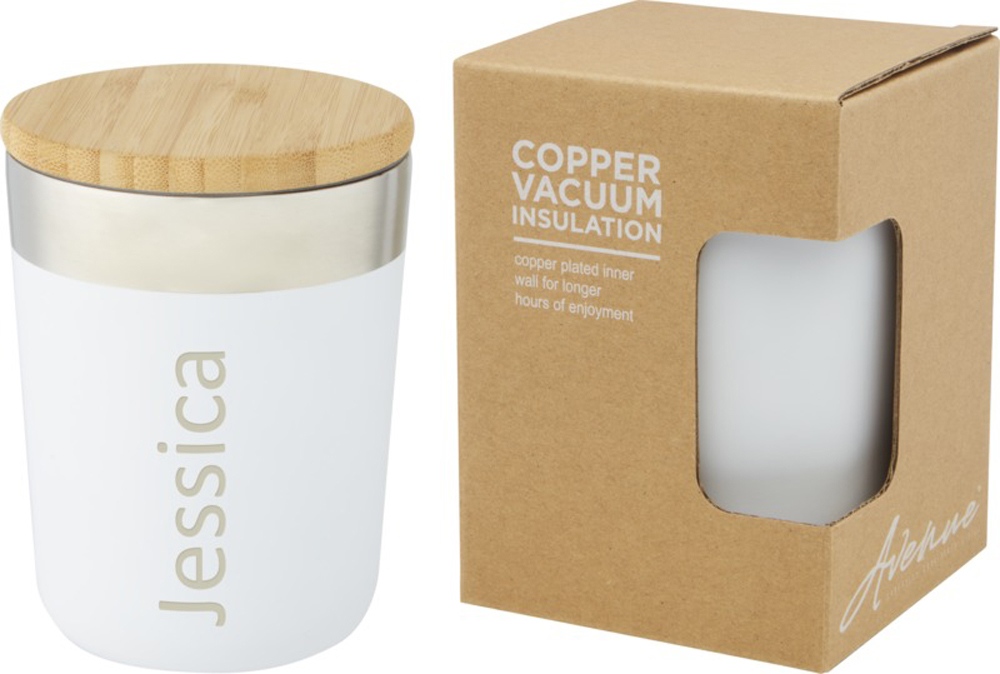Lagan Кружка с медной вакуумной изоляцией объемом 300 мл и бамбуковой крышкой, белый