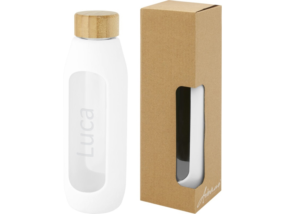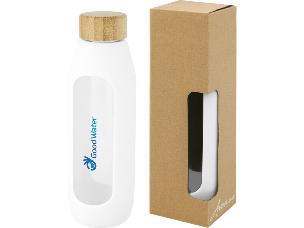 Tidan Бутылка из боросиликатного стекла объемом 600 мл с силиконовым держателем, белый