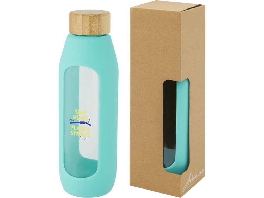Tidan Бутылка из боросиликатного стекла объемом 600 мл с силиконовым держателем, tide green