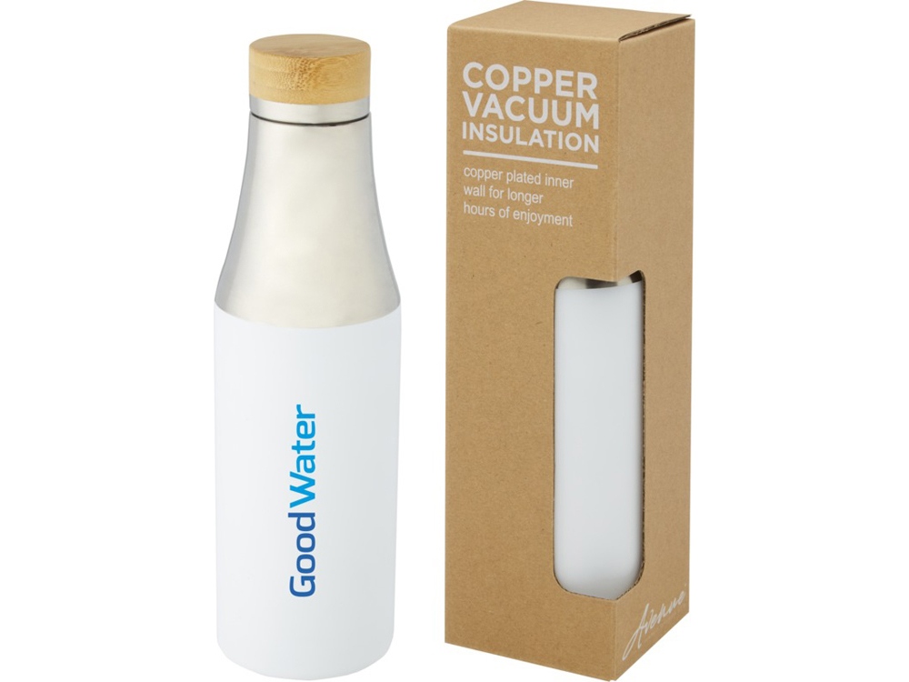 Hulan Бутылка объемом 540 мл с вакуумной изоляцией из меди и бамбуковой крышкой, белый