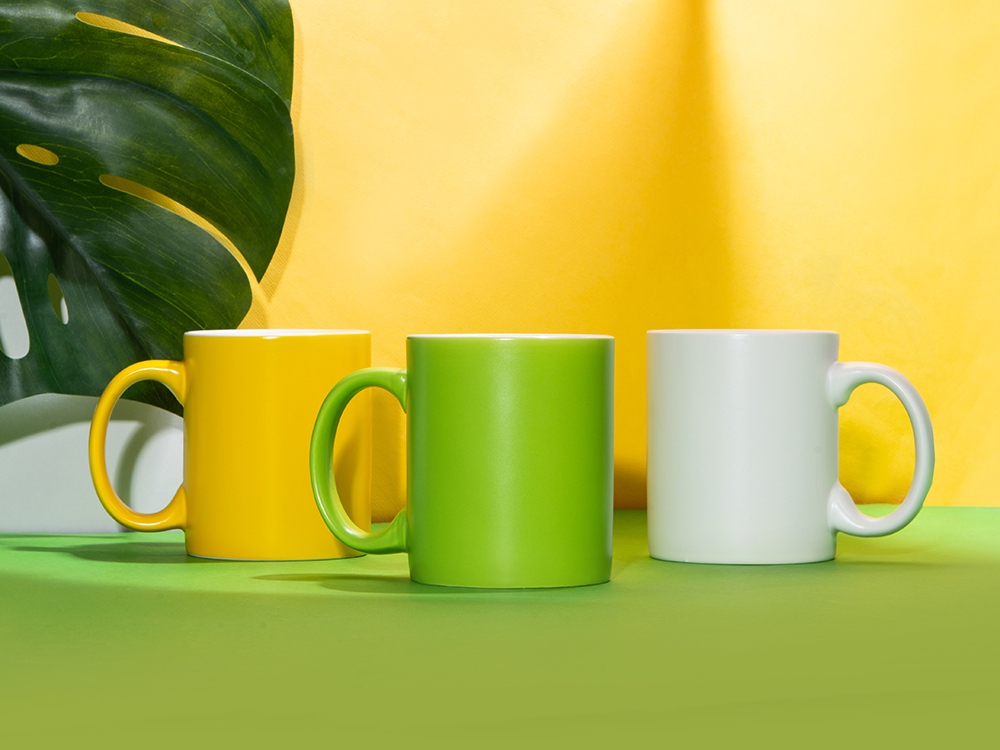 Матовая кружка Марко базовой формы, цветная снаружи, белая внутри, желтый