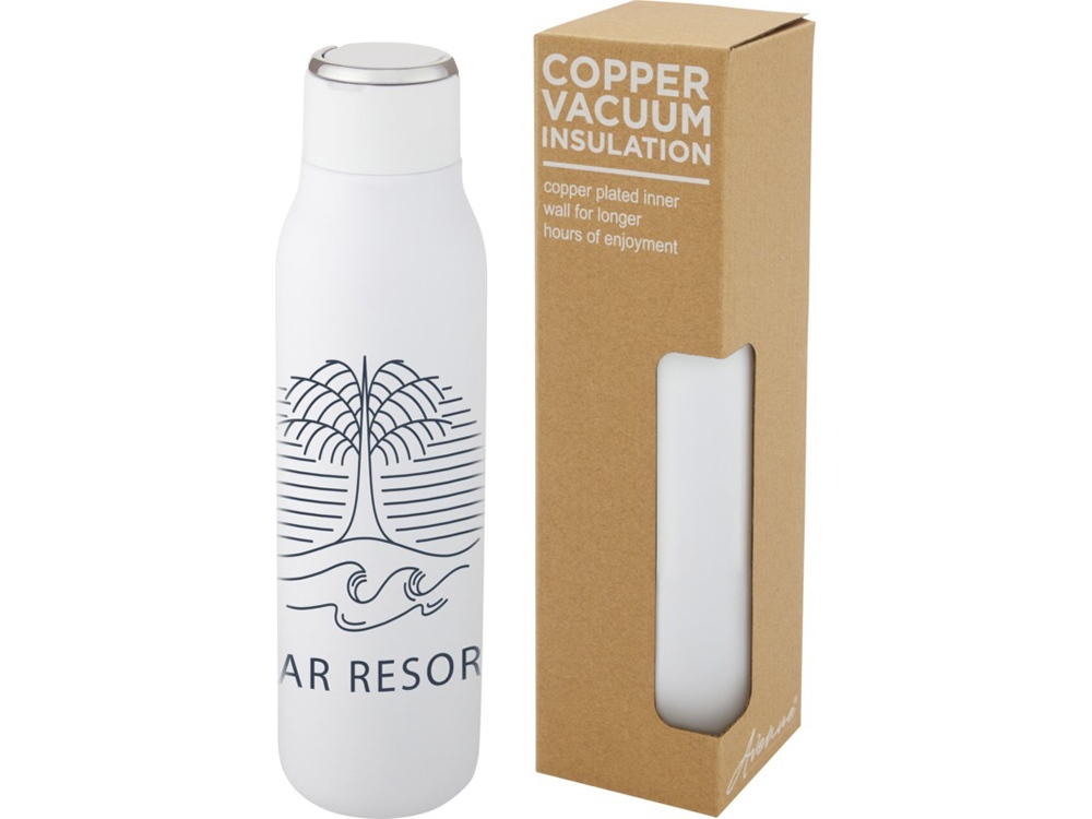 Marka, медная бутылка объемом 600 мл с вакуумной изоляцией и металлической петлей, белый