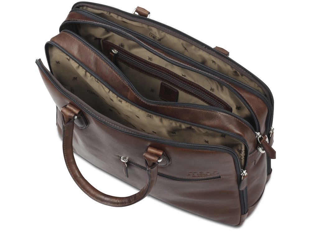 Сумка Mano Don Valentino, натуральная кожа в коричневом цвете, 41,5 х 31 х 10 см