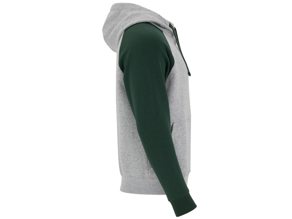 Толстовка с капюшоном Badet мужской, серый меланж/бутылочный зеленый