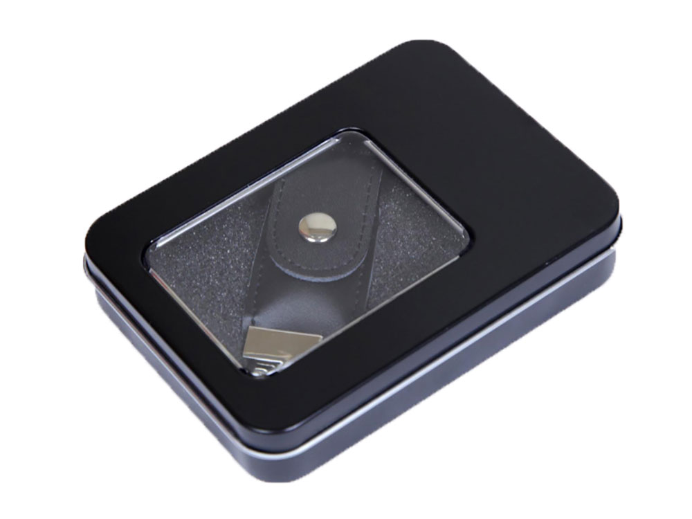 Металлическая коробочка G04 черного цвета с прозрачным окошком