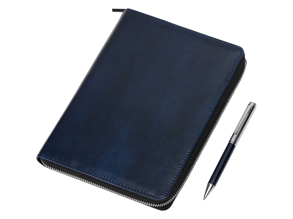 Бизнес-блокнот на молнии А5 Fabrizio с RFID защитой и ручкой, синий