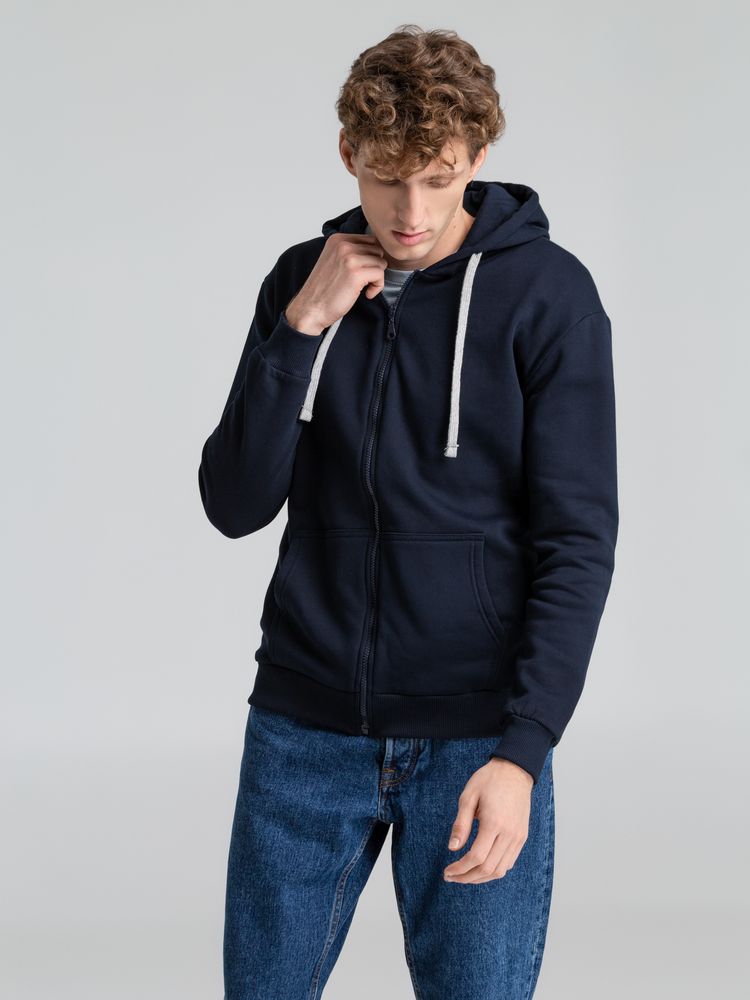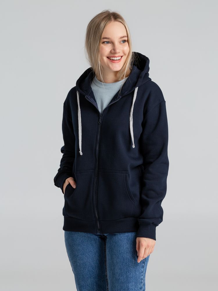 Толстовка на молнии с капюшоном Unit Siverga Heavy темно-синяя, размер XS