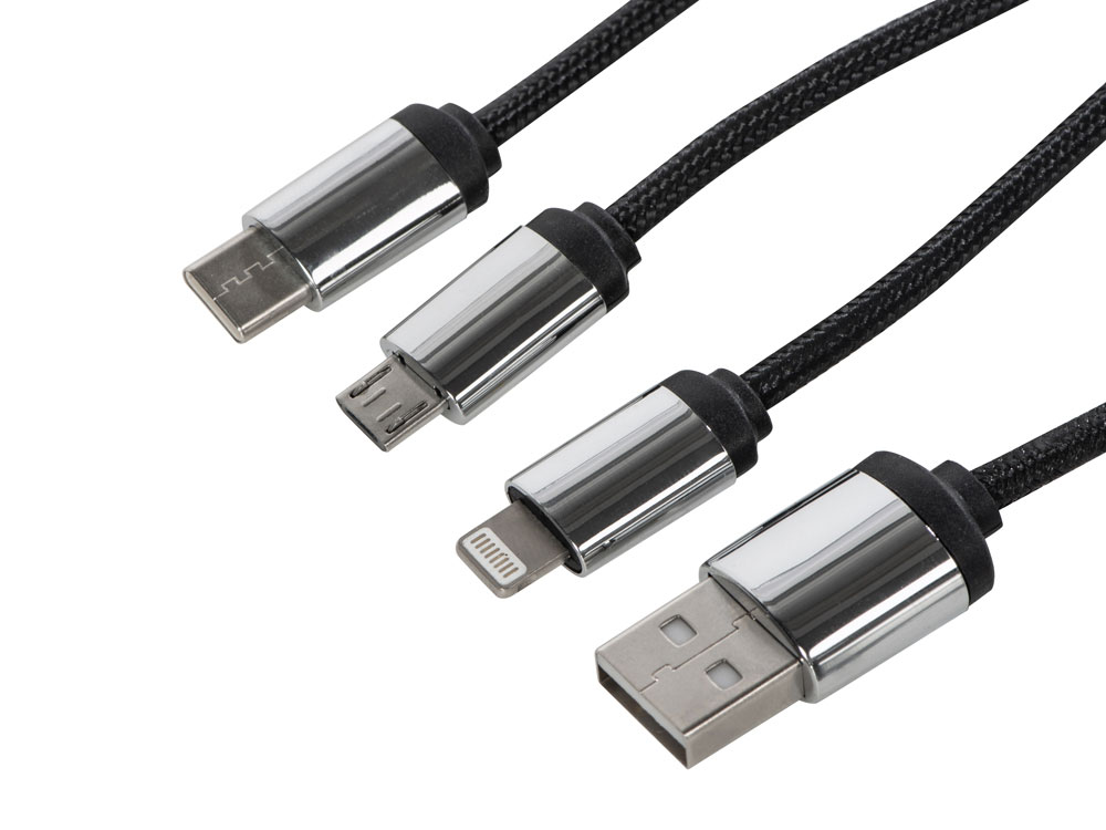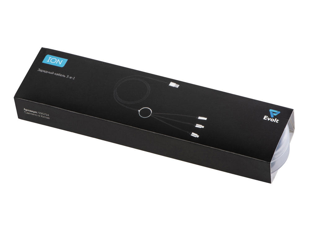 Кабель 3-в-1 с подсветкой логотипа Ion, черный