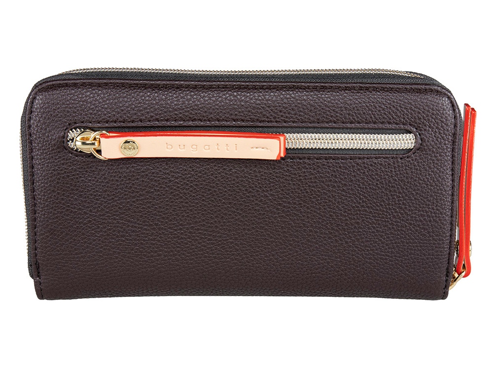 Кошелёк женский BUGATTI Ella, тёмно-коричневый, полиуретан, 19х2х10 см