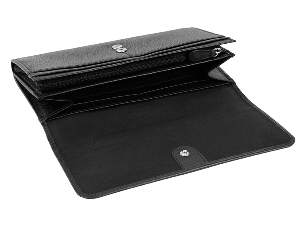 Кошелёк женский BUGATTI Linda, чёрный, натуральная воловья кожа, 19х3х10 см