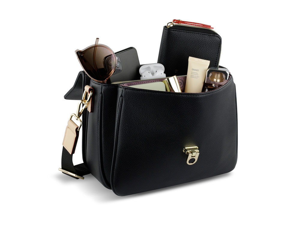 Сумка женская BUGATTI Ella, чёрная, полиуретан, 29х10х22 см