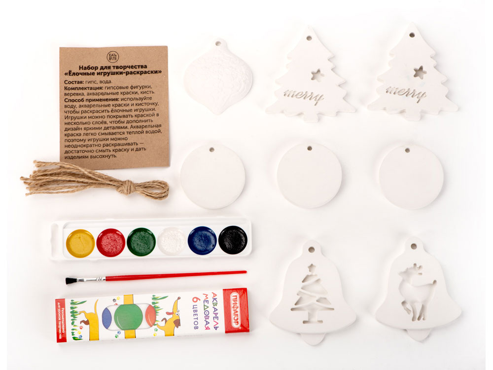 - Комплектность гипсовые фигурки- 8шт, веревка, акварельные краски, кисть