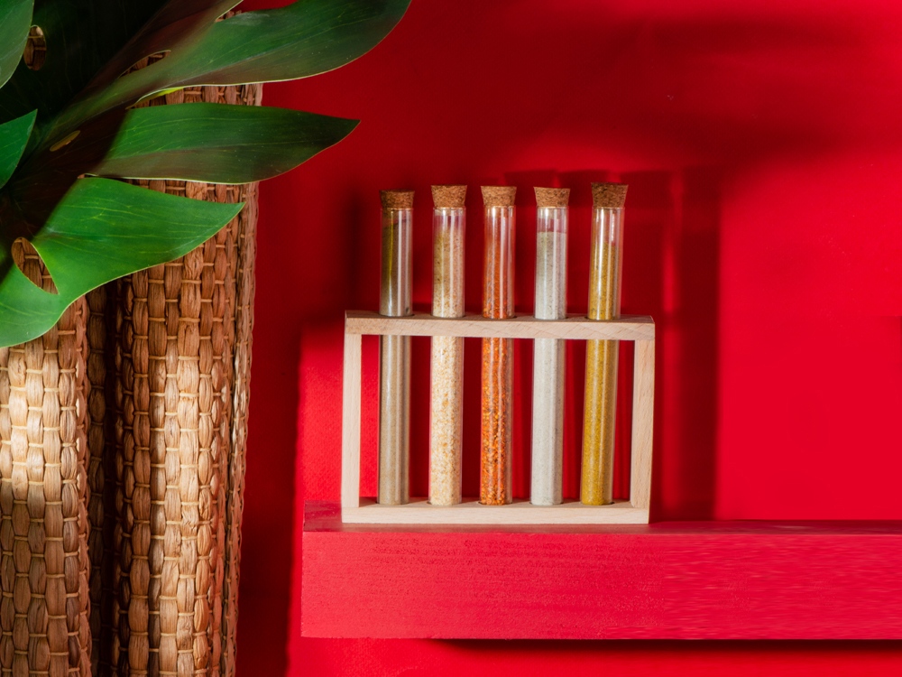 - Размер товара (см) подставка- 15 х 3,5 х 10 см, колба со специями- d1,6 х 16 см