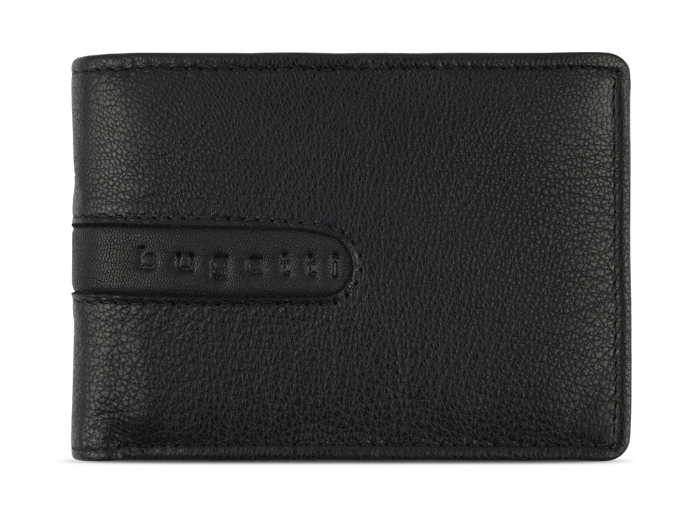 Портмоне BUGATTI Bomba, с защитой данных RFID, чёрное, кожа/полиэстер, 12,5х2х9 см
