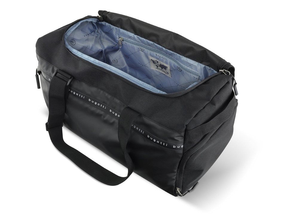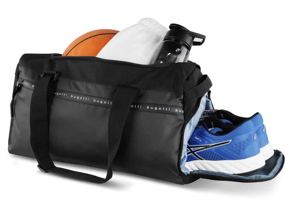Сумка спортивная BUGATTI Blanc Delight, чёрная, нейлон RPET600D/тарпаулин/полиэстер, 47х23х28 см