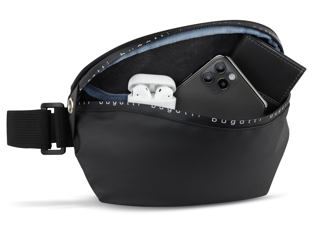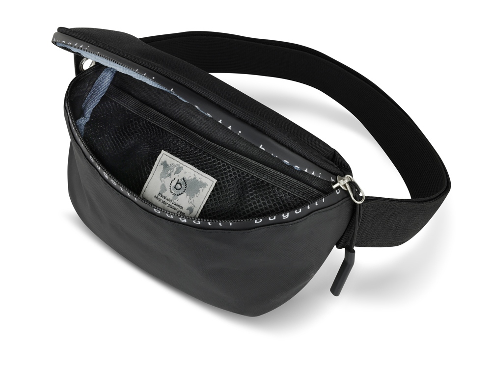 Сумка на пояс BUGATTI Blanc Delight, чёрная, нейлон RPET600D/тарпаулин/полиэстер, 24х11х12,5 см, 2 л
