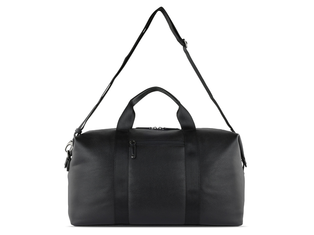 Сумка дорожная BUGATTI Elsa, чёрная, воловья кожа/полиэстер, 47х22х24 см