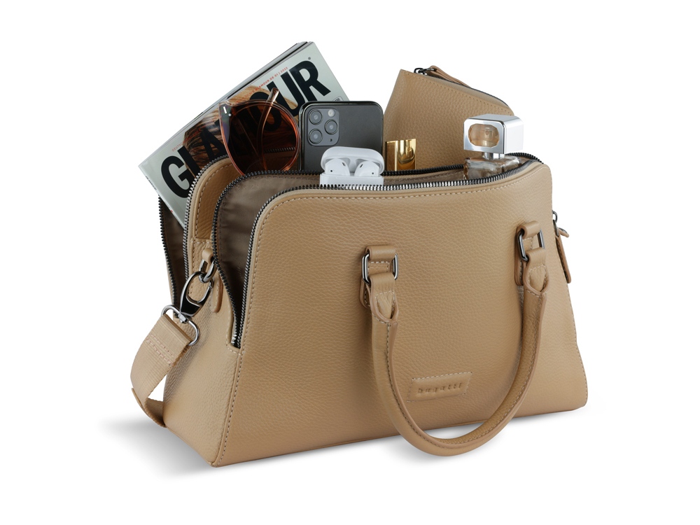 Сумка женская BUGATTI Elsa, песочного цвета, воловья кожа/полиэстер, 32х13х22 см