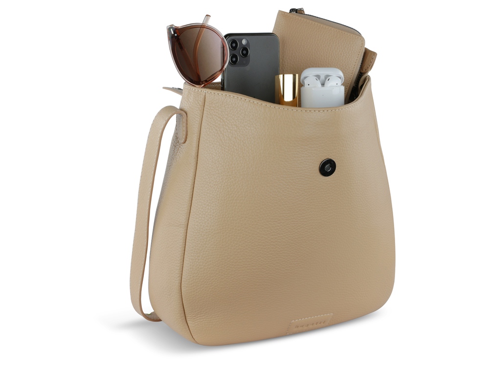 Сумка женская BUGATTI Elsa, песочного цвета, воловья кожа/полиэстер, 29х8х27 см