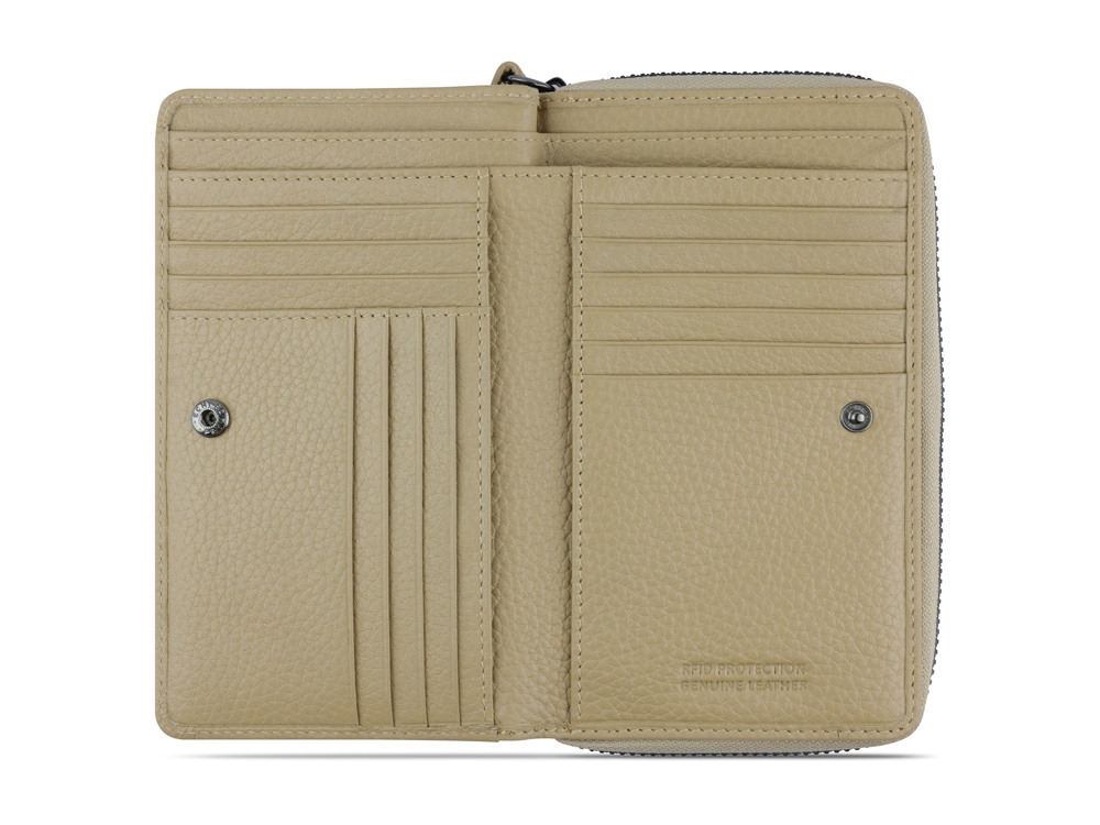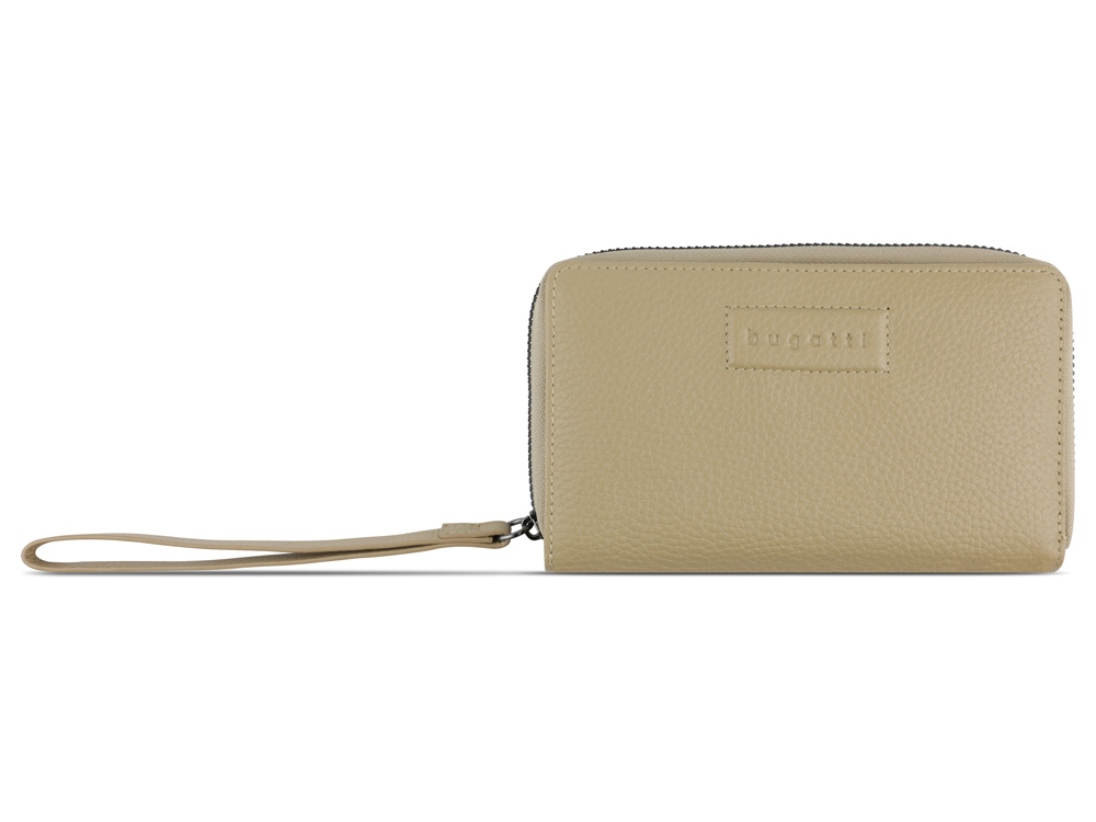 Кошелёк женский BUGATTI Elsa, с защитой RFID, песочного цвета, воловья кожа/полиэстер, 15,5х3х9,5 см