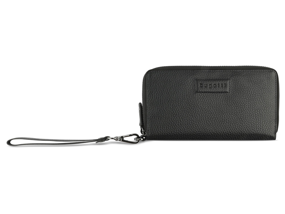 Кошелёк женский BUGATTI Elsa, с защитой данных RFID, чёрный, воловья кожа/полиэстер, 19х3х10,5 см