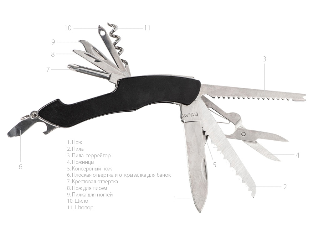 Мультитул-складной нож Demi 11-в-1, серебристый/черный