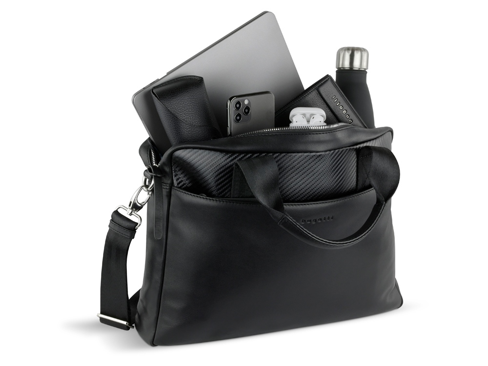 Портфель мужской BUGATTI Comet, чёрный, воловья кожа/полиэстер, 37х6х27 см
