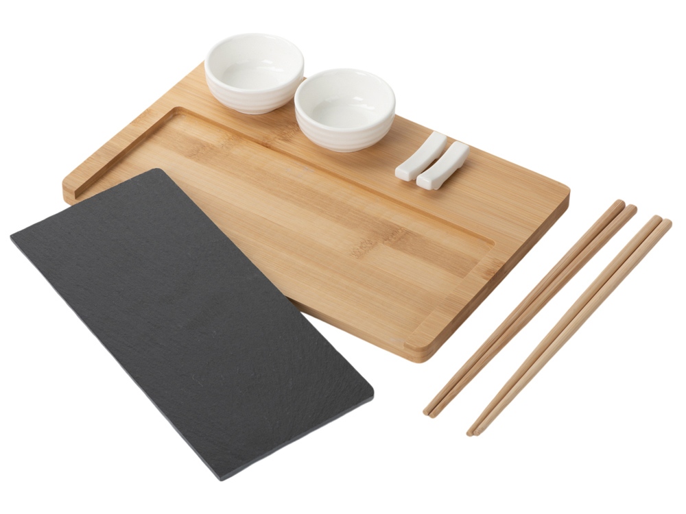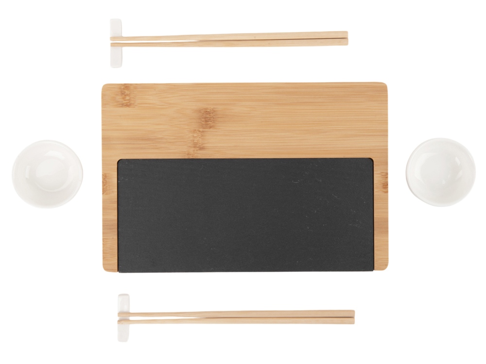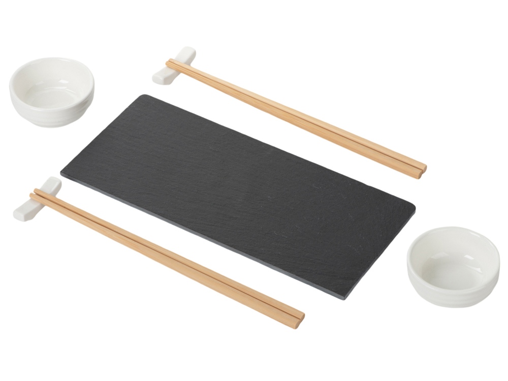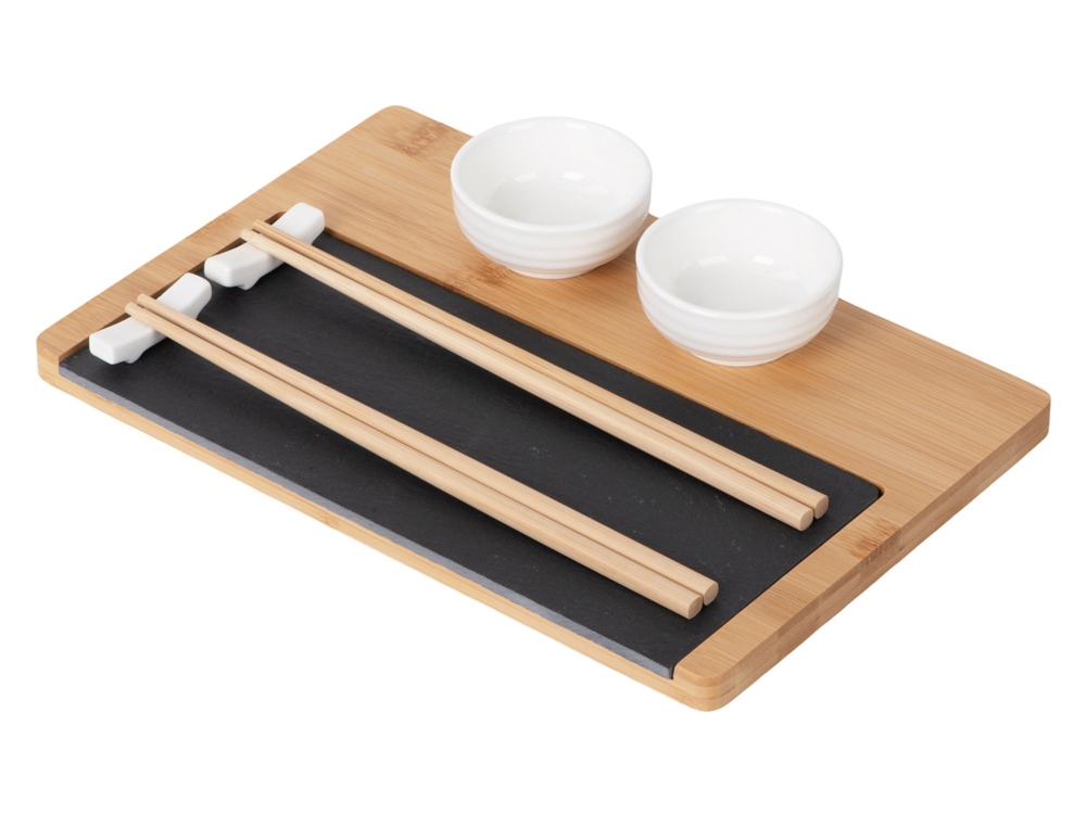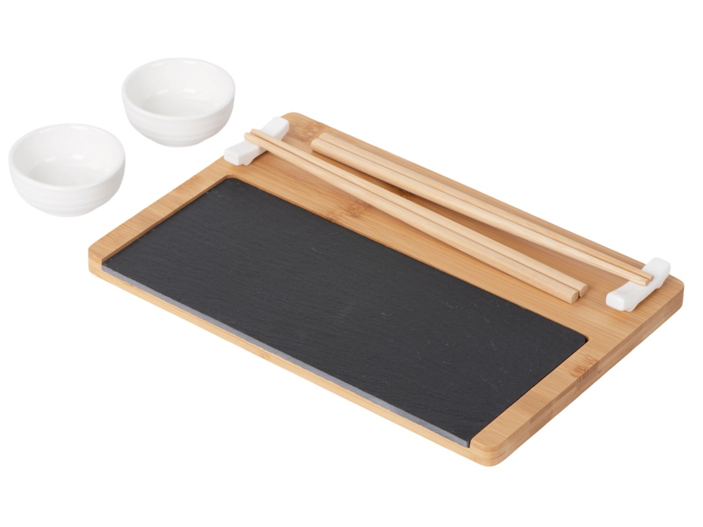 - Комплектность подставка из бамбука и сланца, керамическая соусница 2 шт., набор палочек для суши 2 шт., подставки для палочек 2 шт.