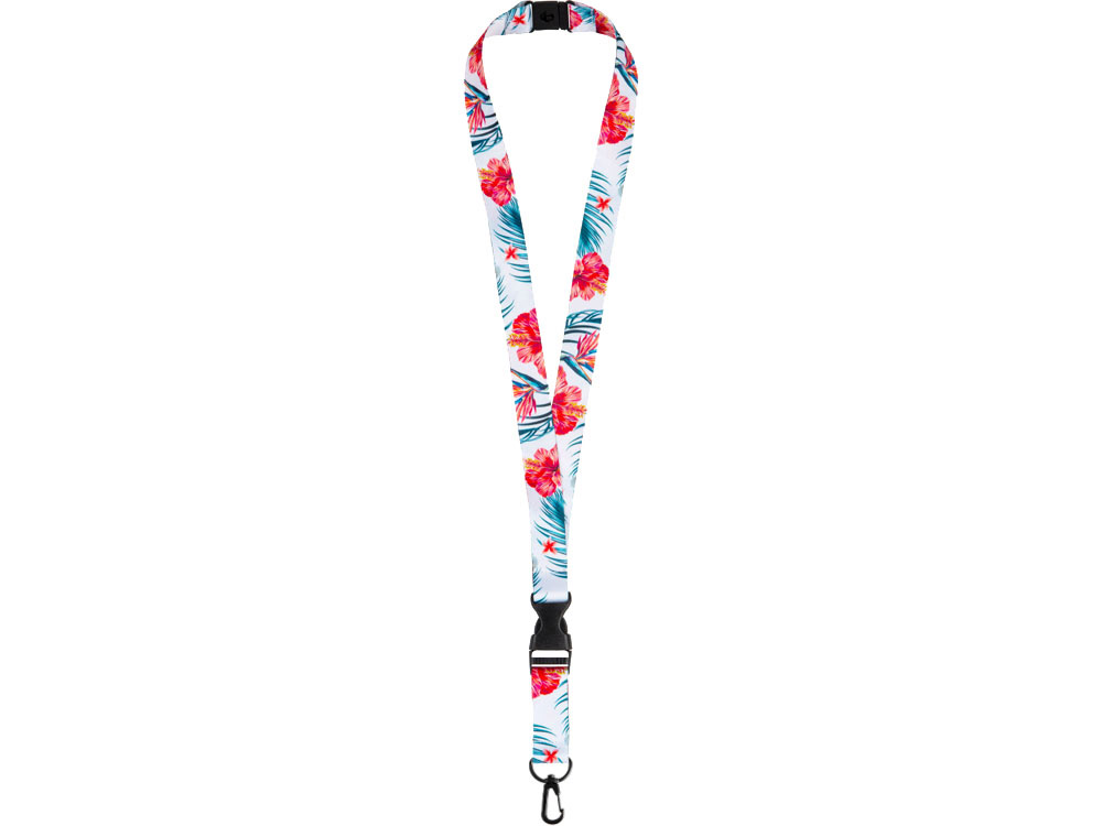 Ланъярд 2 см под сублимацию с карабином, межуровневым замком и замком обрыва, черный