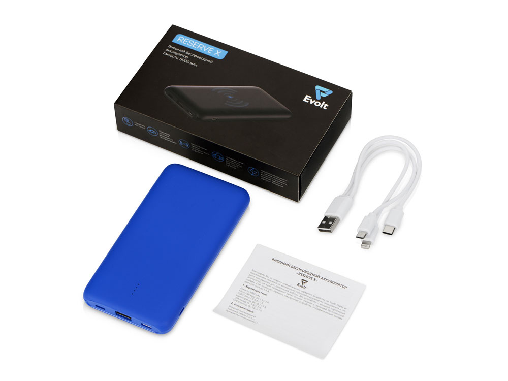 Внешний беспроводной аккумулятор с подсветкой лого Reserve X v.2, 8000 mAh, ярко-синий