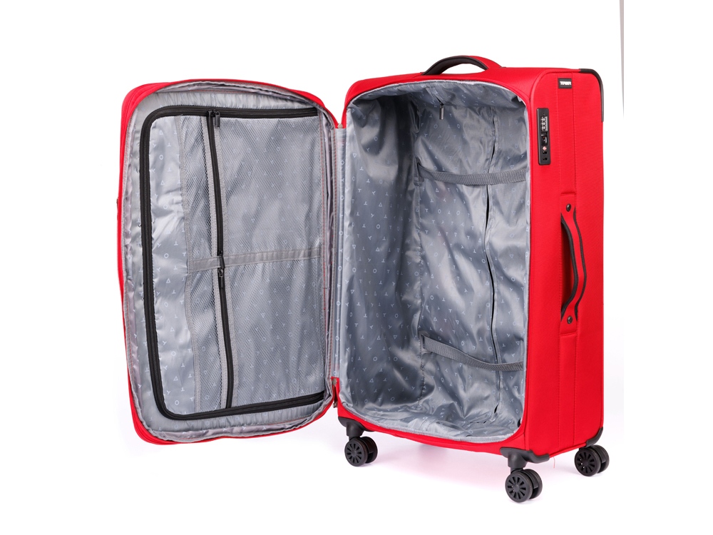 Чемодан TORBER Brosno, красный, нейлон 600D, 48 х 22 х 78 см, 85 л
