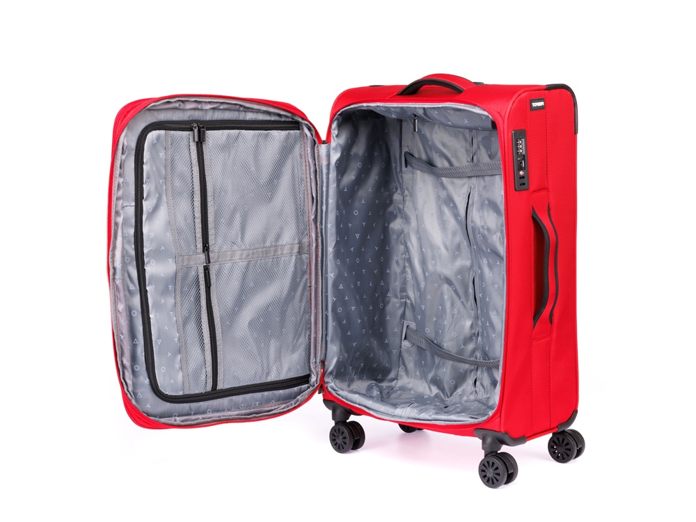 Чемодан TORBER Brosno, красный, нейлон 600D, 43,5 х 19 х 68 см, 56 л