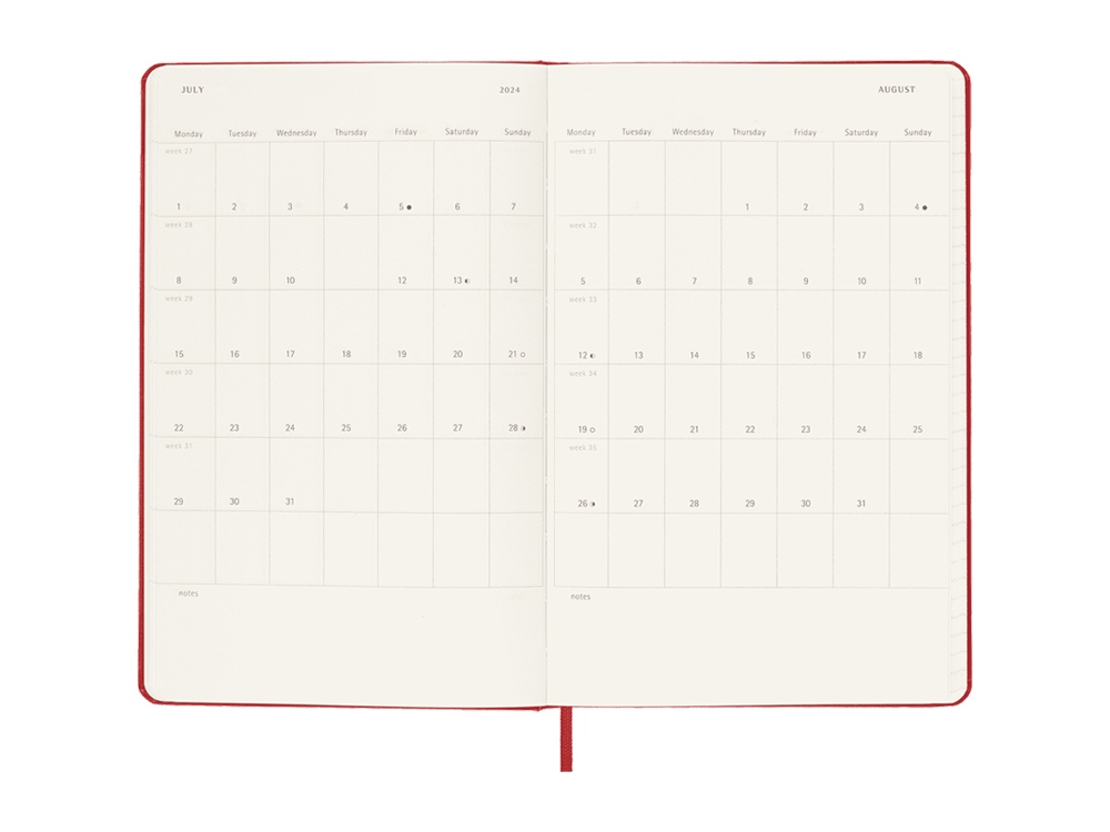 Записная книжка 12 месяцев на 2024 год, в твердой обложке, красный, Large, 13х21