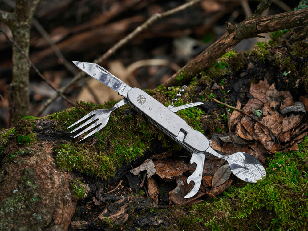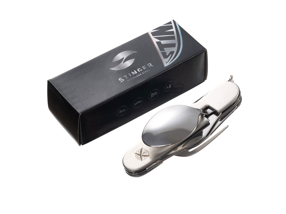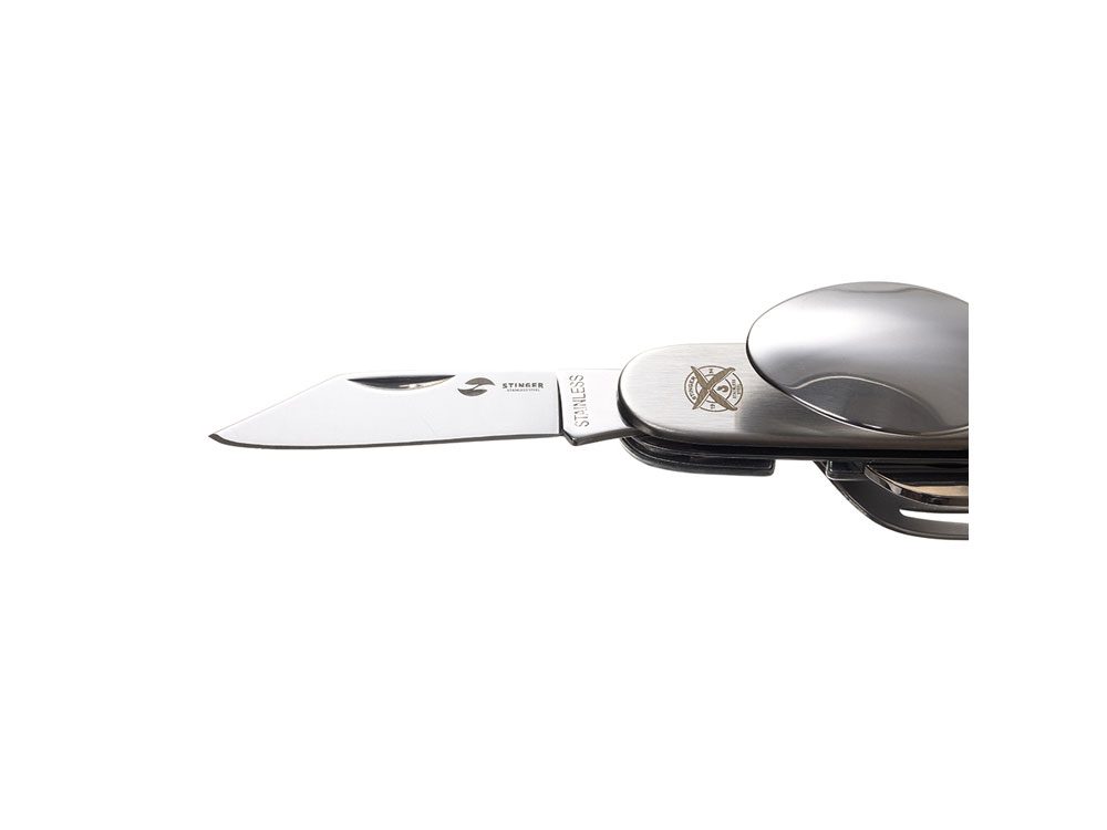 Нож перочинный Stinger, 109 мм, 8 функций, материал рукояти: нержавеющая сталь (серебристый)