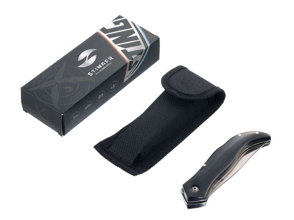 Нож складной Stinger, 101 мм (серебристый), материал рукояти: древесина черного дерева (черный)