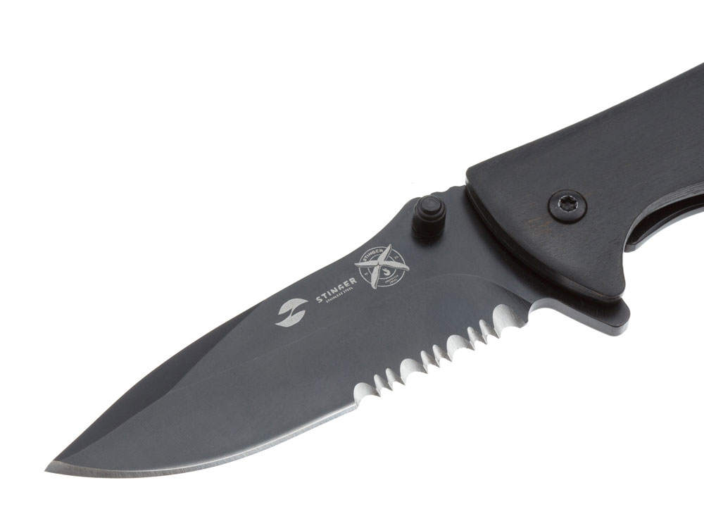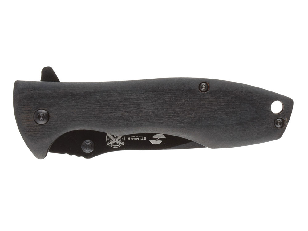 Нож складной Stinger, 80 мм, (чёрный), материал рукояти: сталь/дерево пакка (чёрный)