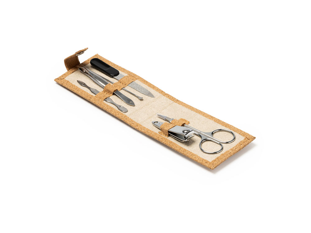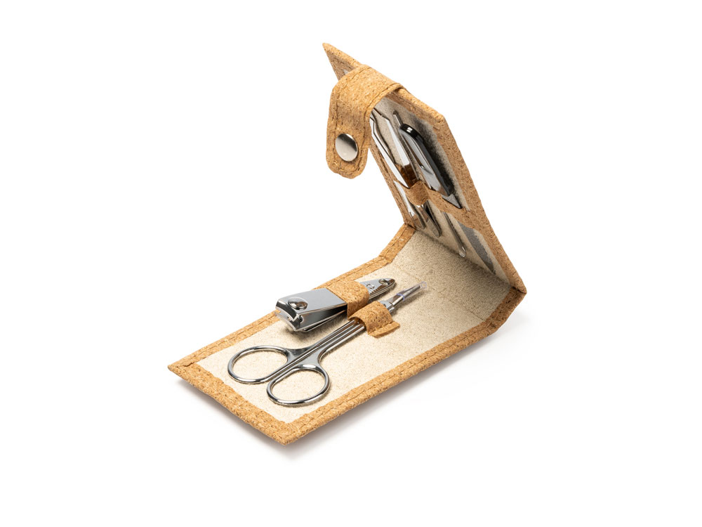 Маникюрный набор PODOX в чехле из пробки, серебристый/бежевый