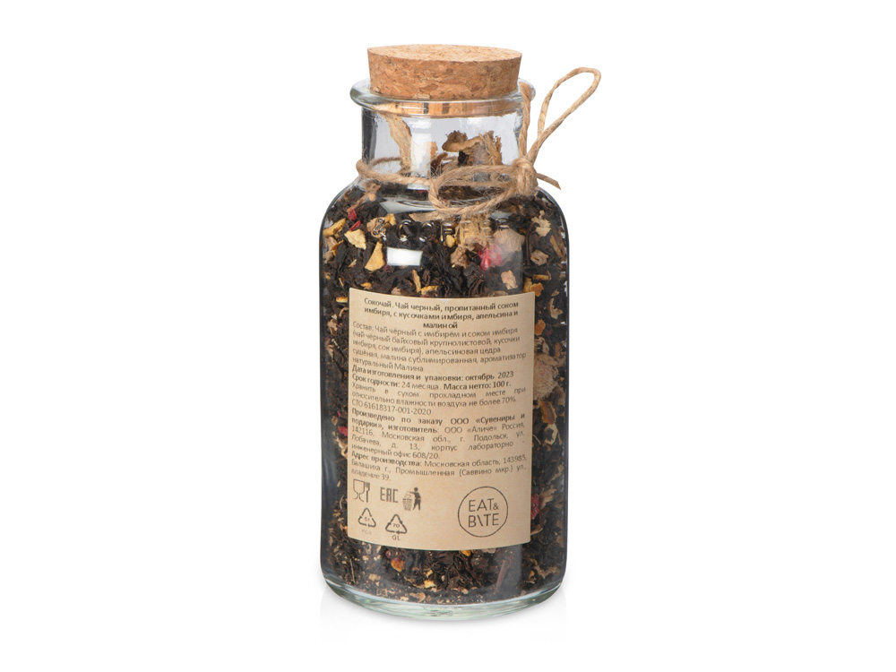 - Состав чай чёрный байховый крупнолистовой, кусочки имбиря, сок имбиря, апельсиновая цедра сушёная, малина сублимированная, ароматизатор натуральный Малина