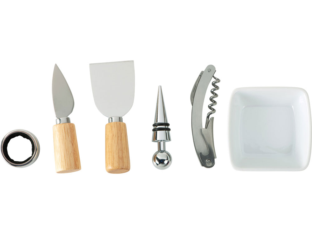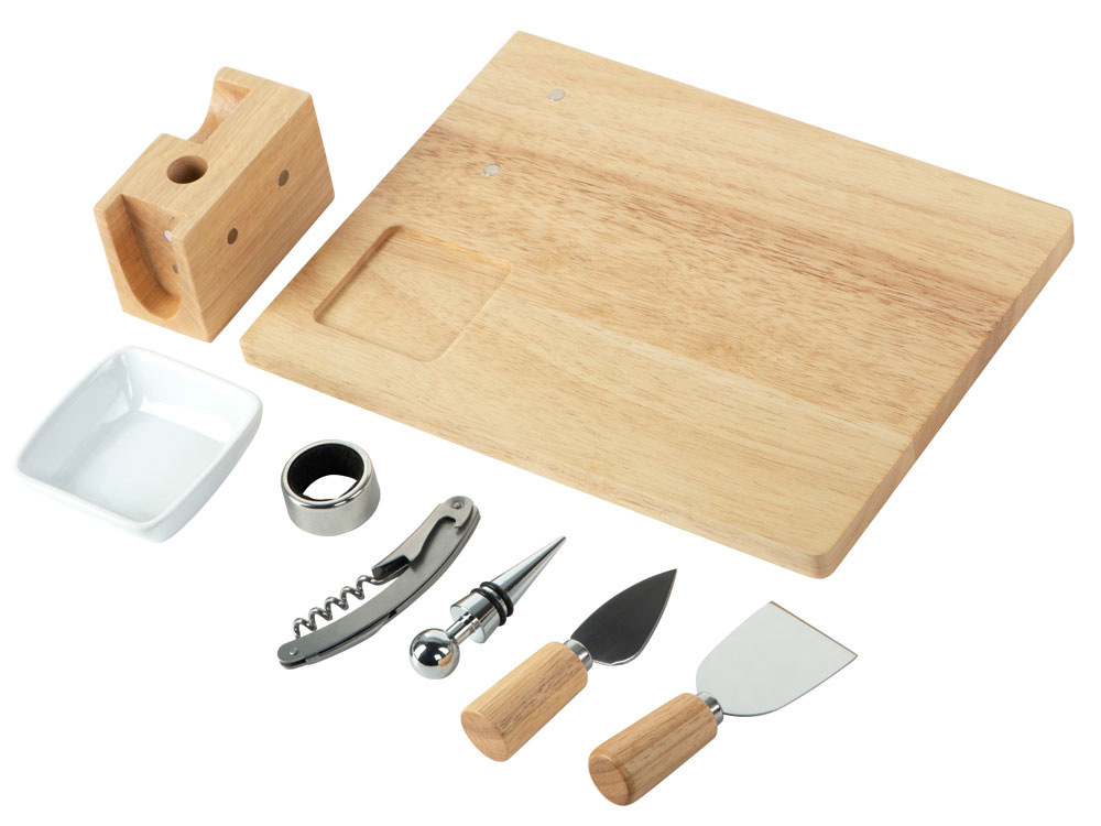 - Комплектность разделочная доска / доска для подачи закусок, соусница / емкость для оливок , штопор, пробка для вина, кольцо для винной бутылки, два сырных ножа