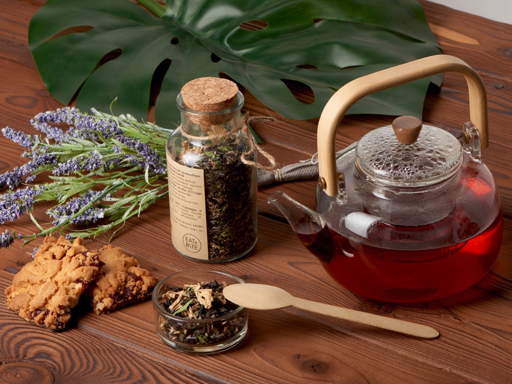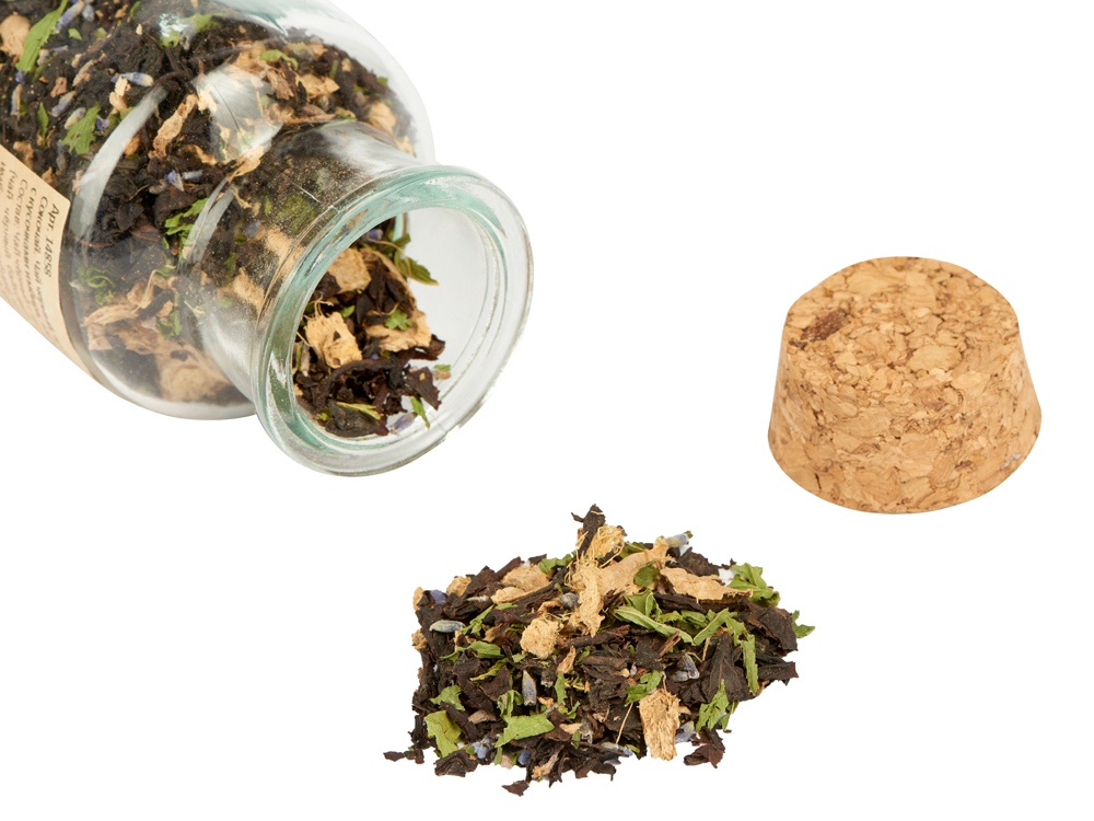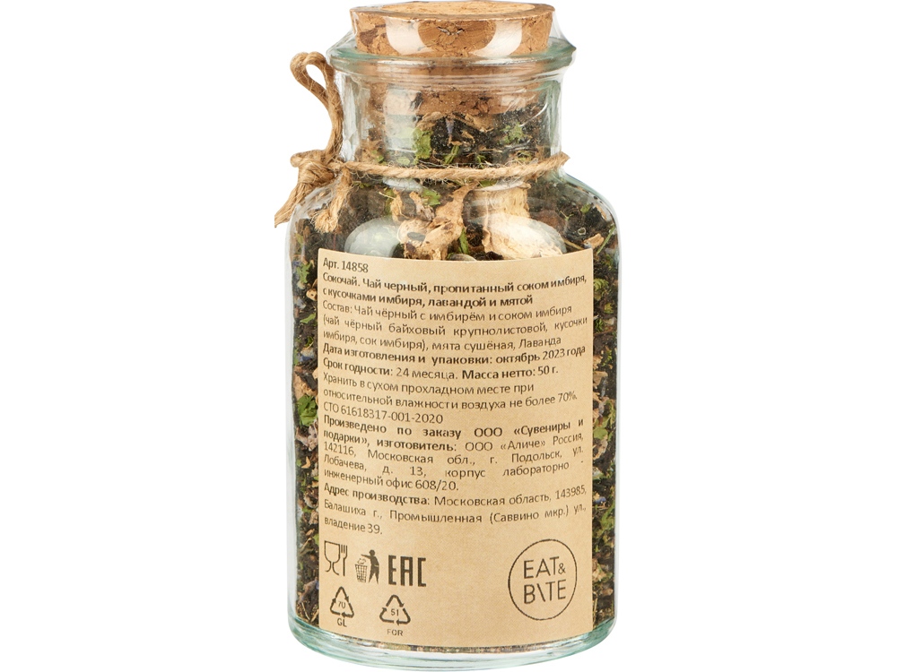 - Состав чай чёрный байховый крупнолистовой, кусочки имбиря, сок имбиря, мята сушёная, Лаванда